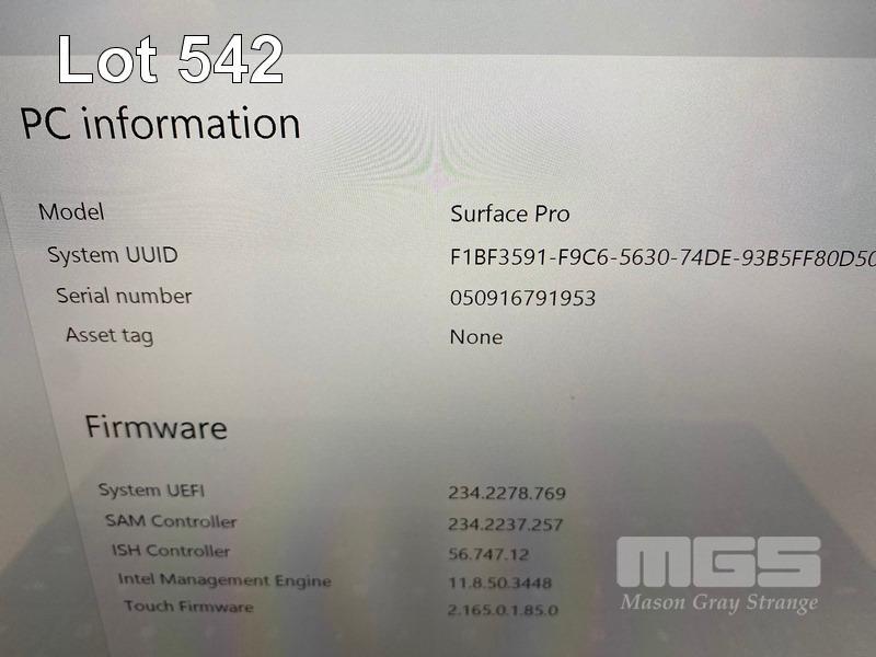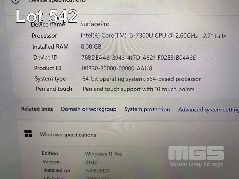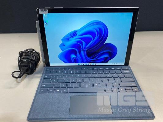 TABLET PC, MICROSOFT SURFACE PRO 5TH GEN, MODEL 1807, CORE i5 7300U (7TH GEN) @ 2.6GHz, 8GB RAM, 256GB SSD, 12.3" TOUCHSCREEN (2736x1824), INTEL HD GRAPHICS 620, Wi-Fi, CELLULAR, BLUETOOTH, WINDOWS 11 PRO INSTALLED, KEYBOARD TYPE COVER, STYLUS & POWER SUPPLY S/N:050916791953