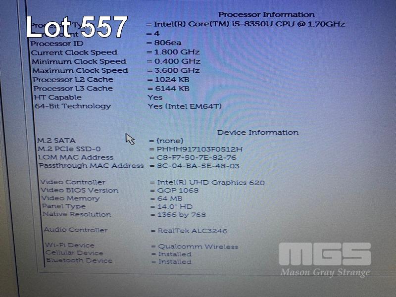 LAPTOP, DELL LATITUDE 7490, CORE i5 8350U (8TH GEN) @ 1.7GHz, 8GB DDR4 RAM, 512GB NVMe M.2 SSD, 14" WIDESCREEN (1366x768), INTEL UHD GRAPHICS 620, Wi-Fi, CELLULAR, BLUETOOTH, WINDOWS 11 PRO INSTALLED & USB-C POWER SUPPLY S/N:G4GRQV2