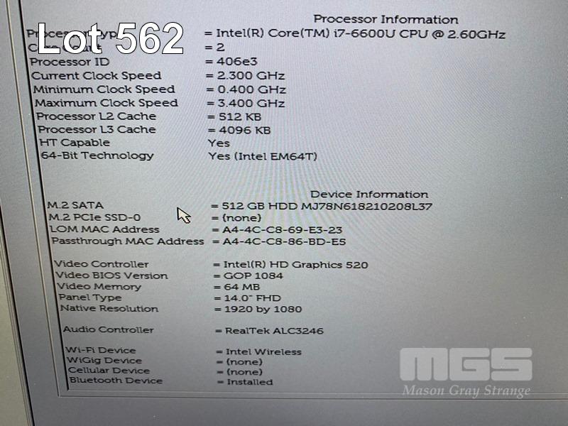 LAPTOP, DELL LATITUDE 7480, CORE i7 6600U (6TH GEN) @ 2.6GHz, 16GB DDR4 RAM, 512GB M.2 SSD, 14" WIDESCREEN (1920x1080), INTEL HD GRAPHICS 520, Wi-Fi, BLUETOOTH, WINDOWS 10 HOME INSTALLED & POWER SUPPLY S/N:2HFHPH2