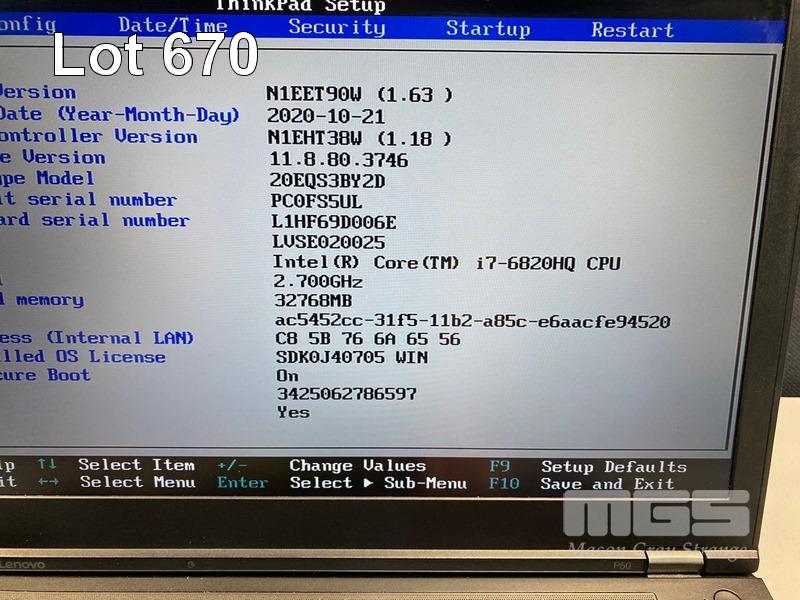 LAPTOP, LENOVO THINKPAD P50 MOBILE WORKSTATION, TYPE 20EQ, CORE i7 6820HQ (6TH GEN) @ 2.7GHz, 32GB DDR4 RAM, 512GB M.2 SSD, 500GB SSD, 15.6" WIDESCREEN (1920x1080), 4GB NVIDIA QUADRO M2000M VIDEO, Wi-Fi, BLUETOOTH, WINDOWS 10 PRO INSTALLED & POWER SUPPLY S/N:PC0FS5UL