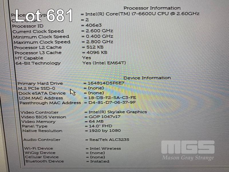 LAPTOP, DELL LATITUDE E7470, CORE i7 6600U (6TH GEN) @ 2.6GHz, 16GB DDR4 RAM, 256GB M.2 SSD, 14" WIDESCREEN (1920x1080), INTEL SKYLAKE GRAPHICS, Wi-Fi, BLUETOOTH, WINDOWS 10 HOME INSTALLED & POWER SUPPLY S/N:DVQRQF2