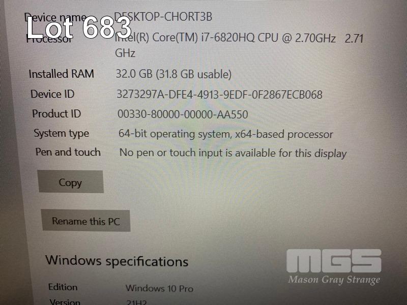 LAPTOP, LENOVO THINKPAD P50 MOBILE WORKSTATION, TYPE 20EQ, CORE i7 6820HQ (6TH GEN) @ 2.7GHz, 32GB DDR4 RAM, 512GB M.2 SSD, 15.6" WIDESCREEN (1920x1080), 4GB NVIDIA QUADRO M2000M VIDEO, Wi-Fi, BLUETOOTH, WINDOWS 10 PRO INSTALLED (NO POWER SUPPLY) (NOTE: MINOR MARKS ON SCREEN, CRACK LINE ON CASING, PART RUBBER EDGING MISSING AROUND SCREEN, LEFT MOUSE CLICK FAULTY) S/N:PC0DC2ZB