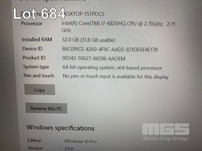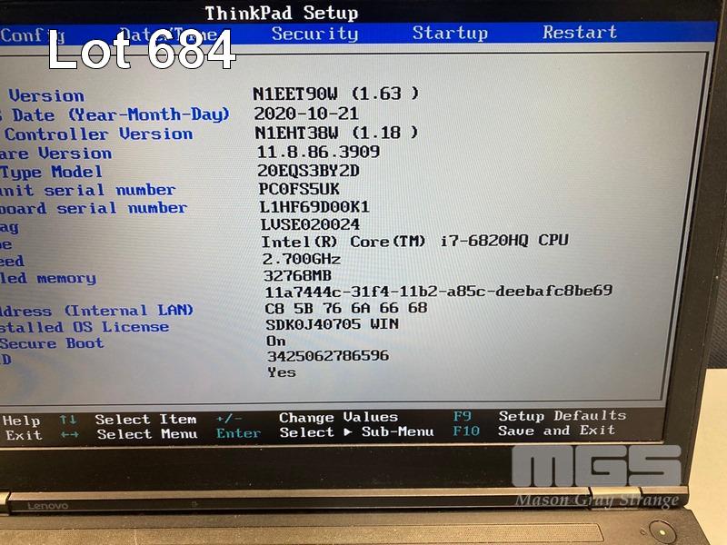 LAPTOP, LENOVO THINKPAD P50 MOBILE WORKSTATION, TYPE 20EQ, CORE i7 6820HQ (6TH GEN) @ 2.7GHz, 32GB DDR4 RAM, 256GB M.2 SSD, 15.6" WIDESCREEN (1920x1080), 4GB NVIDIA QUADRO M2000M VIDEO, Wi-Fi, BLUETOOTH, WINDOWS 10 PRO INSTALLED (NO POWER SUPPLY) (NOTE: MINOR MARKS ON SCREEN, PART RUBBER EDGING MISSING AROUND SCREEN) S/N:PC0FS5UK