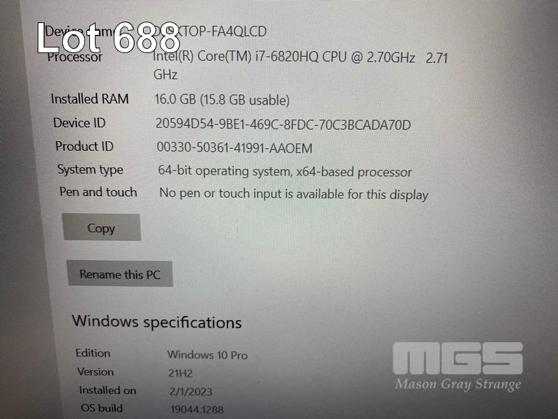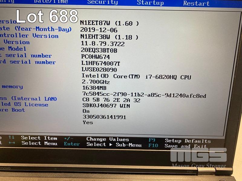 LAPTOP, LENOVO THINKPAD P50 MOBILE WORKSTATION, TYPE 20EQ, CORE i7 6820HQ (6TH GEN) @ 2.7GHz, 16GB DDR4 RAM, 256GB M.2 SSD, 525GB SSD, 15.6" WIDESCREEN (1920x1080), 4GB NVIDIA QUADRO M2000M VIDEO, Wi-Fi, BLUETOOTH, WINDOWS 10 PRO INSTALLED (NO POWER SUPPLY) (NOTE: MARKS ON SCREEN, KEYBOARD FAULTY) S/N:PC0HW674