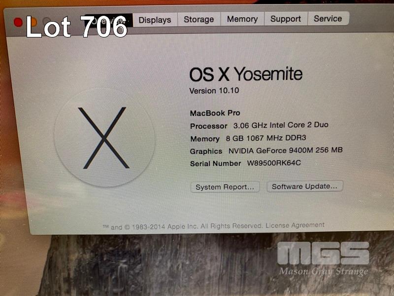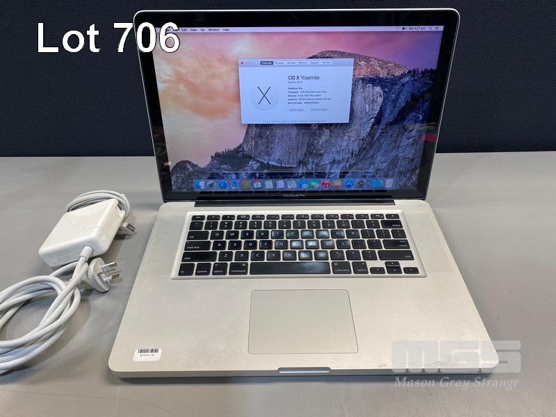 LAPTOP, APPLE MACBOOK PRO (A1286), CORE 2 DUO T9900 @ 3.06GHz, 8GB DDR3 RAM, 500GB SATA HDD, DVD-RW, 15.4" WIDESCREEN (1440x900), MAC OS 10.10 INSTALLED & POWER SUPPLY S/N:W89500RK64C