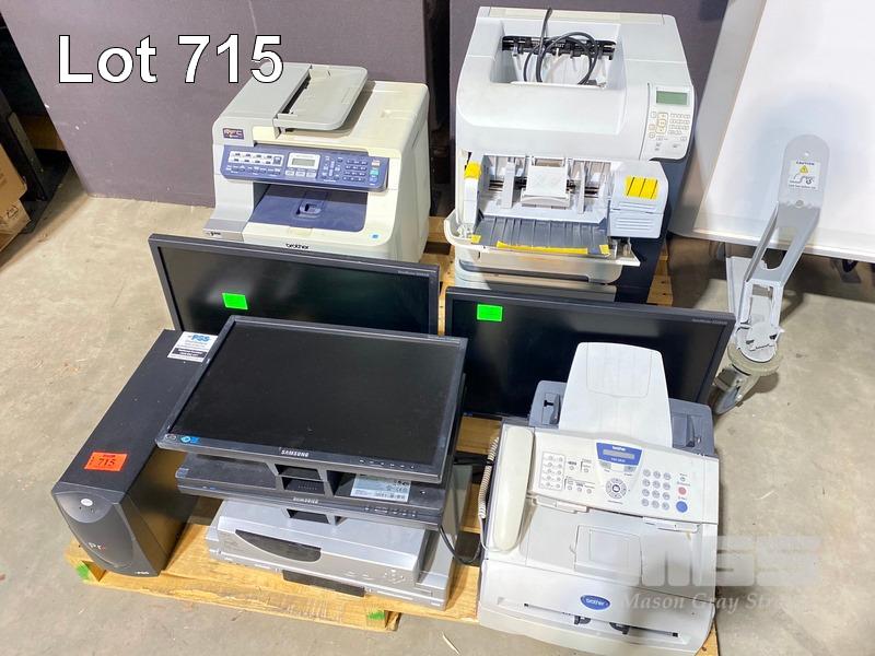 1 x PALLET LOT ASST LCD MONITORS (SOME WITH FAULTS), BROTHER FAX MACHINE, HP PRINTER, BROTHER PRINTER & UPS