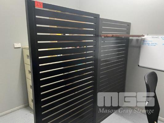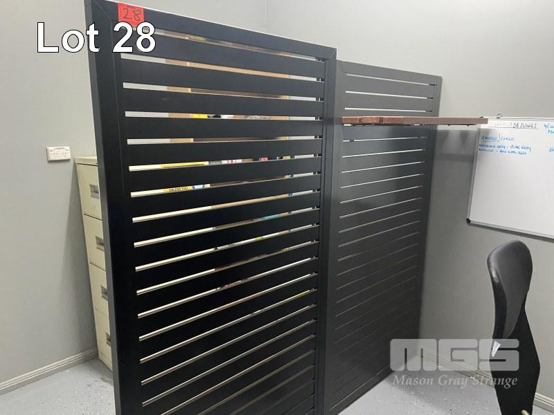 2 x POWDER COATED ALUMINIUM DIVIDING SCREENS, 1750 x 970mm, GREY & 1800 x 1000mm BLACK