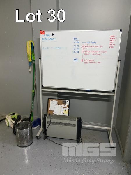 WHITEBOARD EASEL, HEATER, SABCO FLOOR MOP & VACUUM