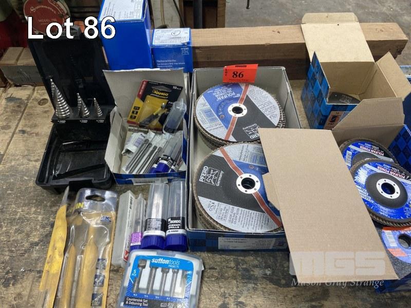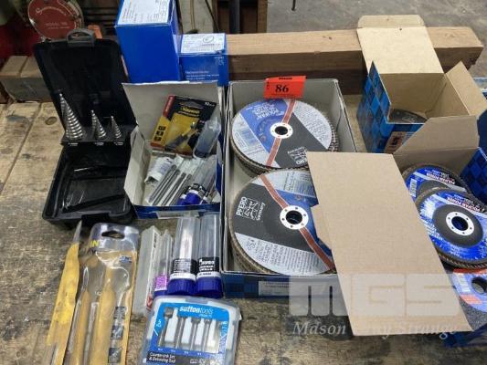 QUANTITY NEW TEK BITS, FLAP DISCS, DRILL BITS, SPIRAL FLUTE DRILLS, DEBUR KIT, ETC