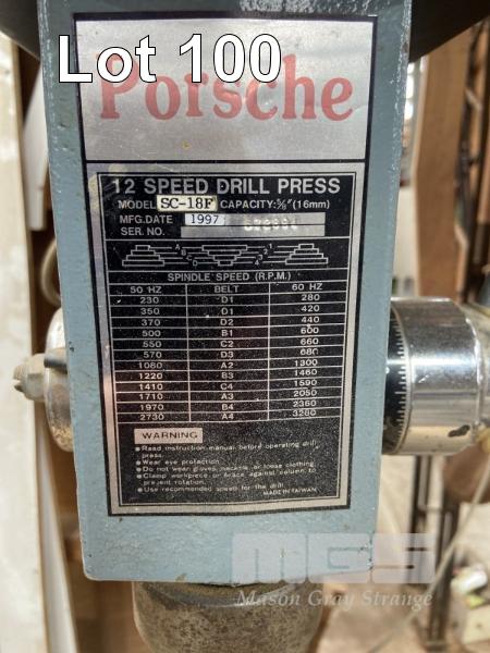 PEDESTAL DRILL, PORSCHE MOD: SC18F 12 SPEED, 240V