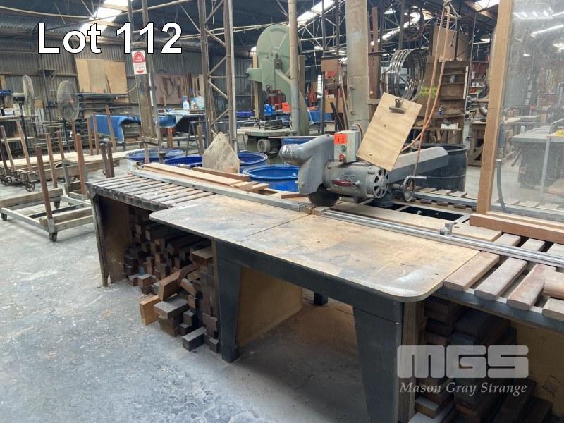 RADIAL ARM DOCKING SAW, NOLEX 14" BLADE, 415V & CUSTOM IN & OUTFEED TABLE
