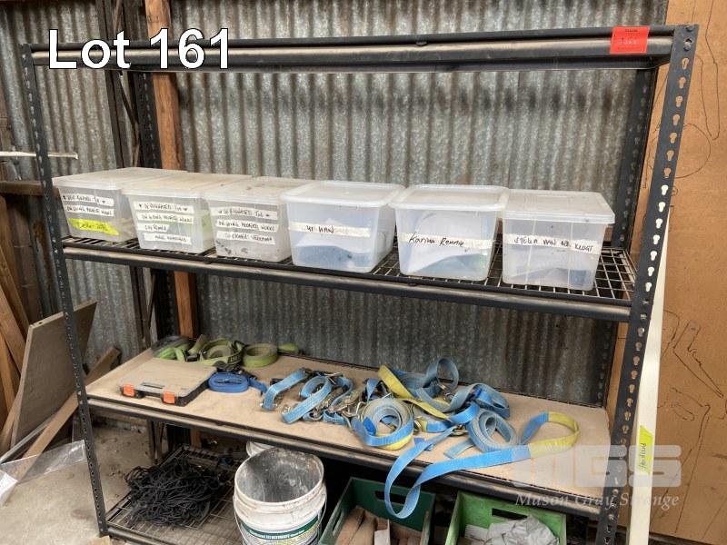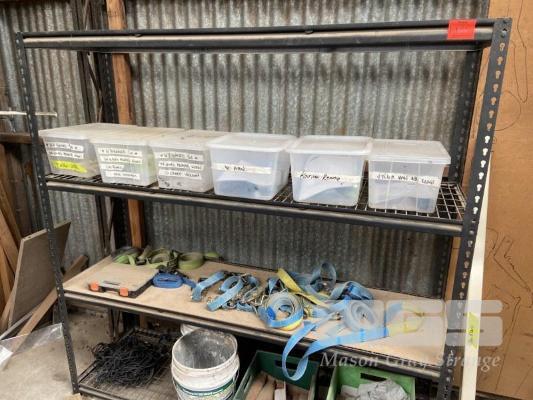 ADJUSTABLE STEEL RACK, 180 x 210cm, ASSORTED TIE DOWNS & PVC TUBS