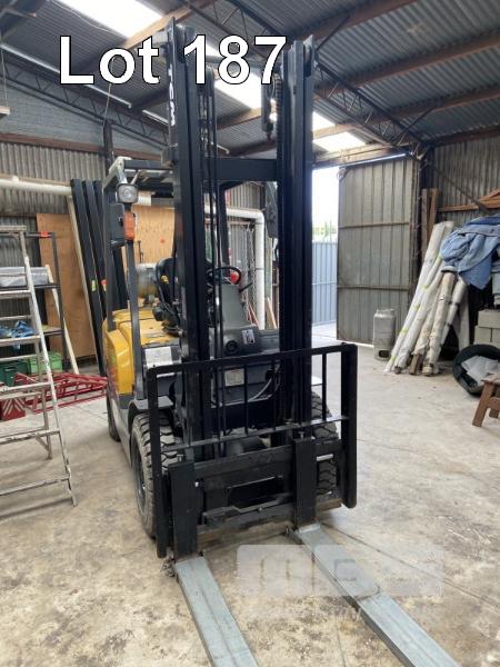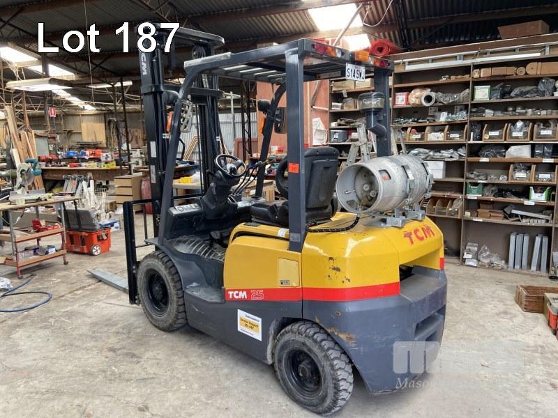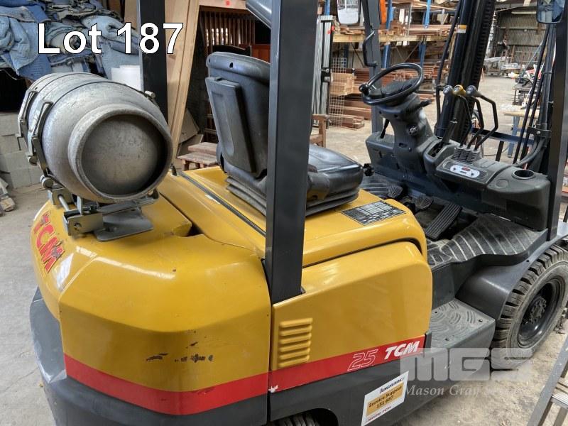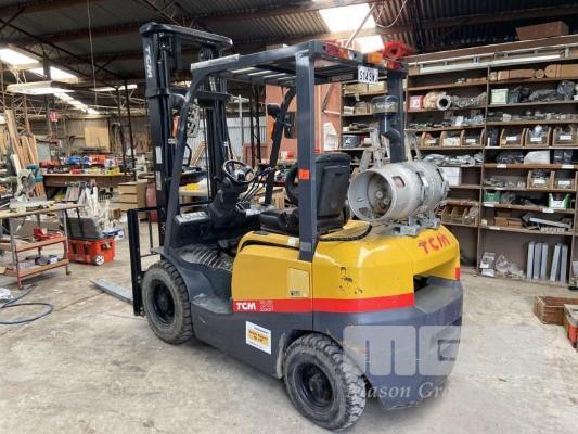 FORKLIFT, TCM REG: S14 SWJ MOD: FG25T3 2 STAGE, 400mm MAST SEE THROUGH TWIN RAM 1,690kg LIFT, SIDE SHIFT LPG, AIR TYRE HOURS: 1,579 INDICATED