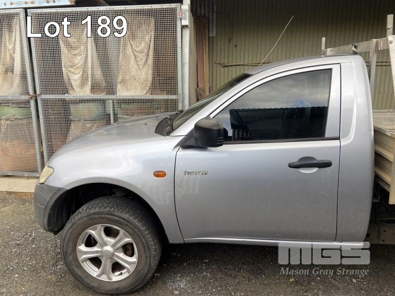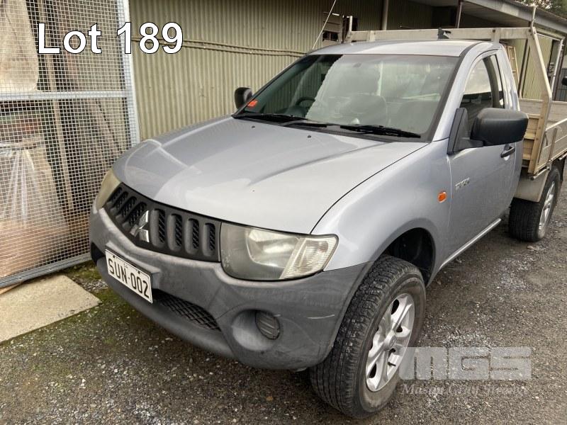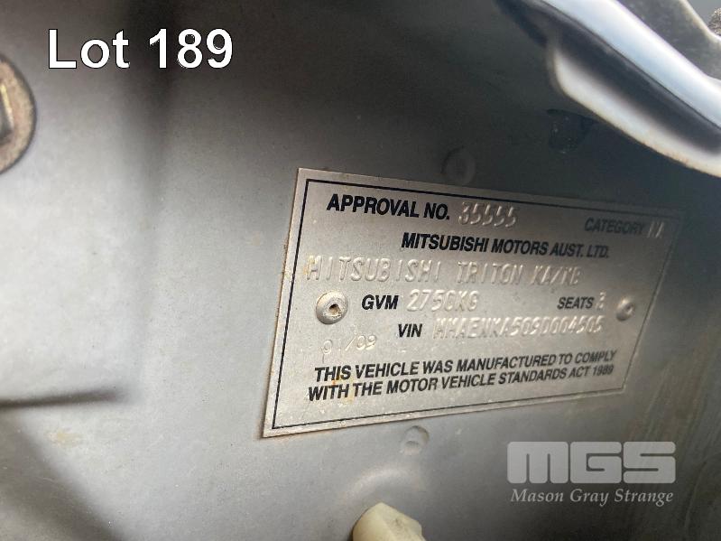 2009 MITSUBISHI TRITON SINGLE CAB TRAYTOP 4x2 REG: SUN 002 VIN: MMAENKA509D004805 ODO: 206,370kms SHOWING 4 CYLINDER PETROL, 5 SPEED MANUAL TRANSMISSION, 4x2 AIR CON, ALLOY TRAY, ALLOY WHEELS, POWER STEERING, POWER WINDOWS, NAVMAN TOWPACK