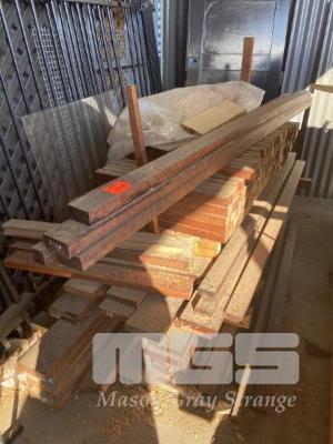 STACK OF HARDWOOD STAKES, PLANKS, 70, 90 & 140mm, UP TO 1800m & 1 x PALLET CEDAR WEDGES & OFFCUT