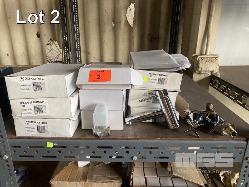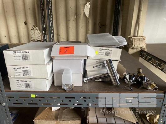 CONTENTS OF SHELF, 6 x HOT/COLD MIXERS, 6 x CHROME HOT/COLD MIXER TAPS