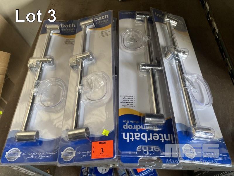 6 x CHROME INTERBATH RAINDROP SHOWER HEAD SLIDE BARS, NEW IN PACKAGING