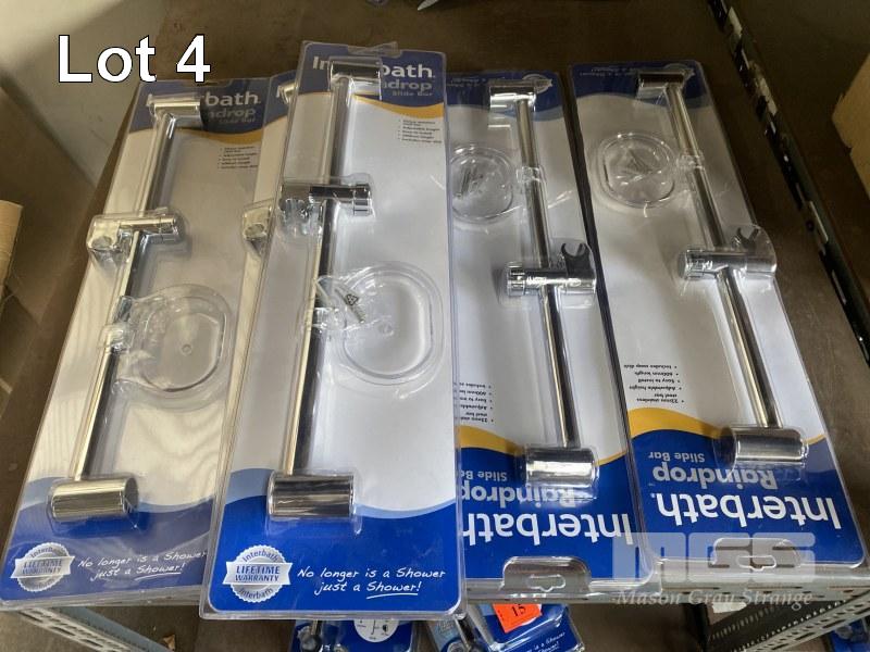 6 x CHROME INTERBATH RAINDROP SHOWER HEAD SLIDE BARS, NEW IN PACKAGING