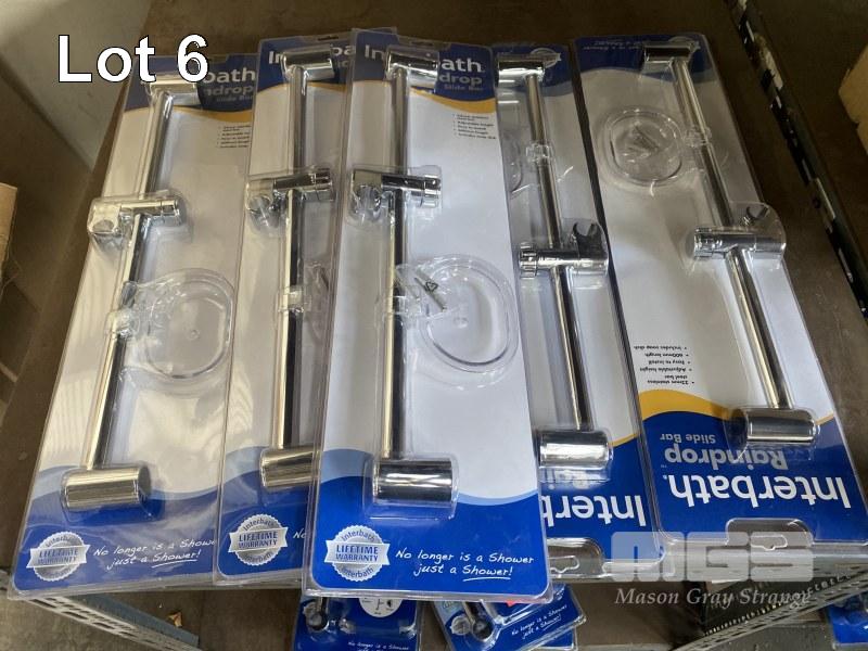 6 x CHROME INTERBATH RAINDROP SHOWER HEAD SLIDE BARS, NEW IN PACKAGING