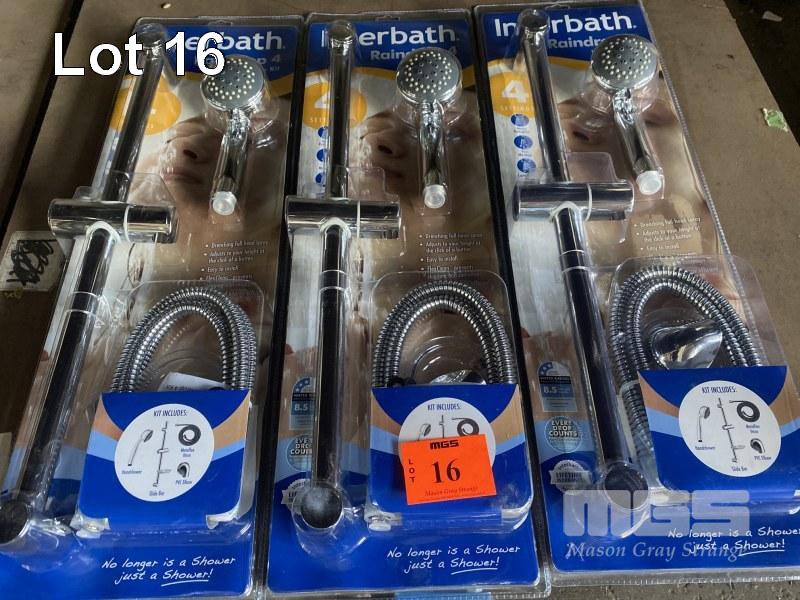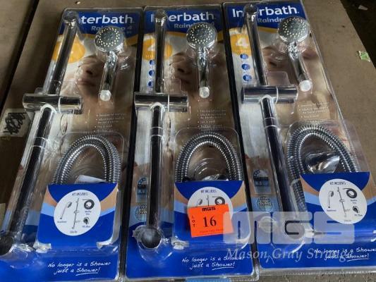 3 x CHROME INTERBATH RAINDROP FLEXI HOSE SHOWER HEADS, NEW IN PACKAGING