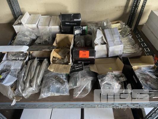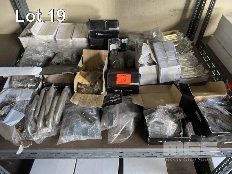 CONTENTS OF SHELF, ASSORTED DOOR HARDWARE, HINGES, HANDLES, DOOR CATCHES, LOCKS, ETC.