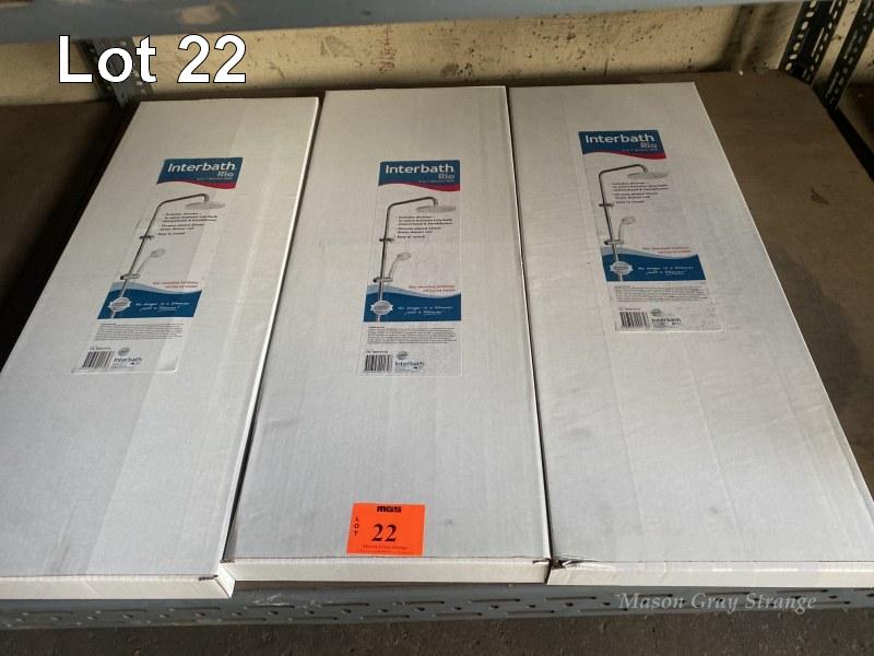 3 x CHROME INTERBATH 2 IN 1 SHOWER RAILS (HEADS NOT INCLUDED), NEW IN BOXES