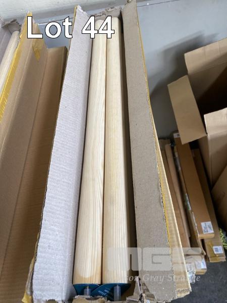 CONTENTS OF PALLET, LARGE QUANTITY REPLACEMENT TIMBER TABLE LEGS, ROUND, WITH METAL THREAD