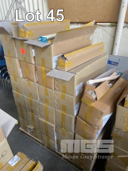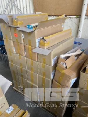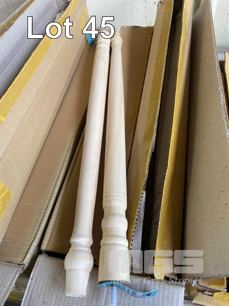 CONTENTS OF PALLET, LARGE QUANTITY REPLACEMENT TIMBER TABLE LEGS, ROUND, COLONIAL, TAPERED, WITH METAL THREAD