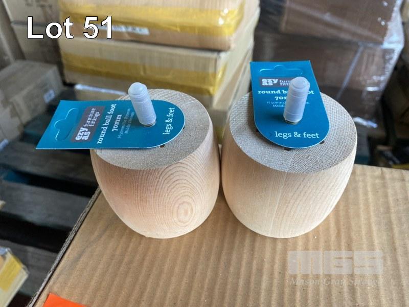 CONTENTS OF PALLET, LARGE QUANTITY REPLACEMENT WOODEN FURNITURE FEET, WITH METAL THREAD