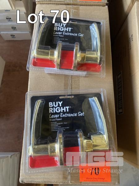 14 x BRASS PLATED LEVER ENTRANCE SETS, WITH 3 KEYS, NEW IN PACKAGING