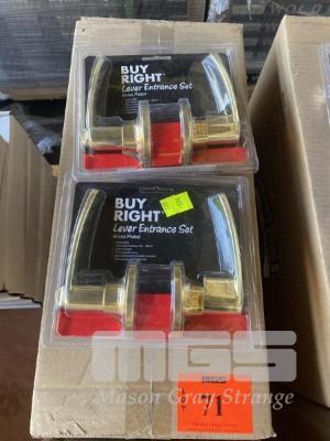 14 x BRASS PLATED LEVER ENTRANCE SETS, WITH 3 KEYS, NEW IN PACKAGING
