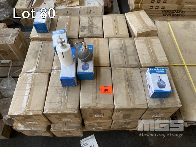 CONTENTS OF PALLET, LARGE QUANTITY INTERBATH SOAP DISPENSERS, VARIOUS SHAPES & COLOURS