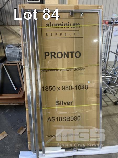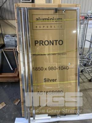 3 x ALUMINIUM REPUBLIC PRONTO ADJUSTABLE SHOWER SCREENS, SILVER FRAME, MODEL: AS18SB980, 1850 x 980 - 1040mm, NEW IN BOXES