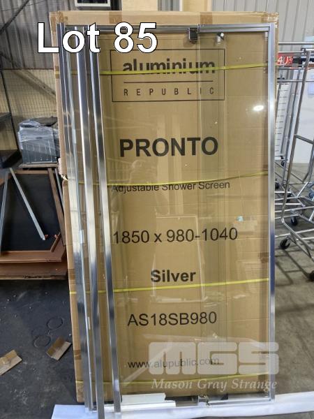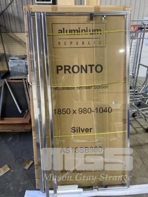 3 x ALUMINIUM REPUBLIC PRONTO ADJUSTABLE SHOWER SCREENS, SILVER FRAME, MODEL: AS18SB980, 1850 x 980 - 1040mm, NEW IN BOXES