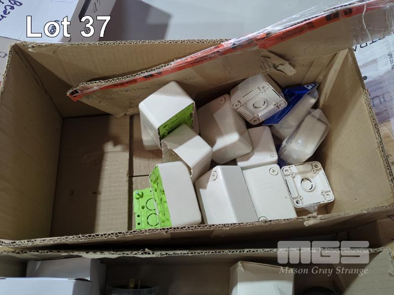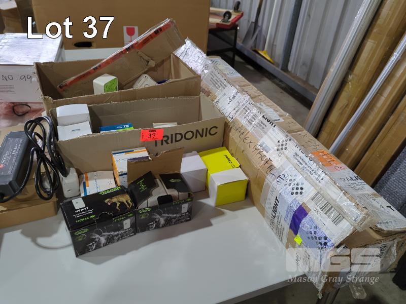 ASSORTED JUNCTION BOXES, TWIST LOCKS ETC. 1 X CARTON FLEX PROFILE 98CM LENGTH.
