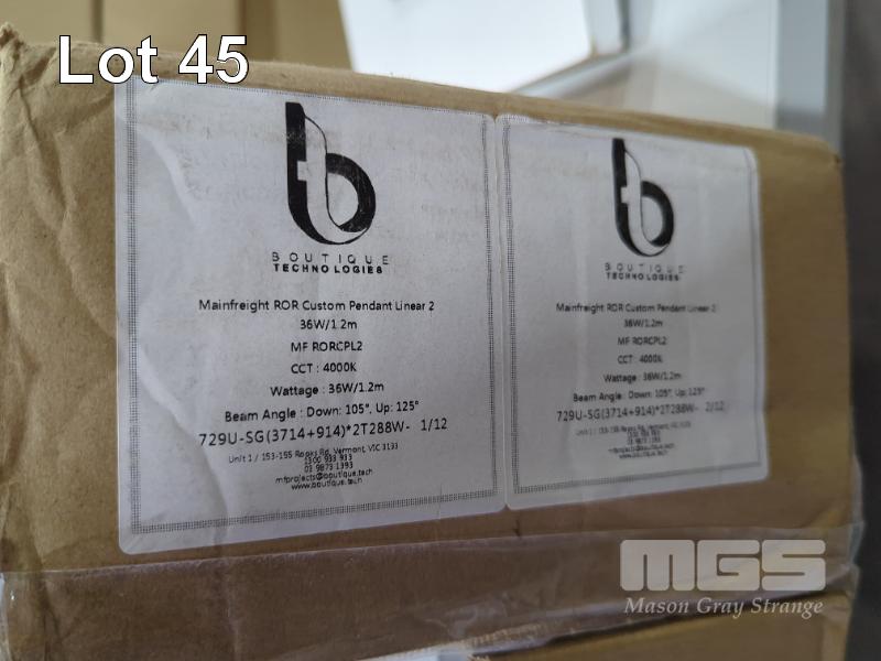 1 X TECHNOLOGIES ROR 36W/1.2M CUSTOM PENDANT LINEAR-2 LIGHT (2 X 1.1M SECTIONS, MF RORCPL2)