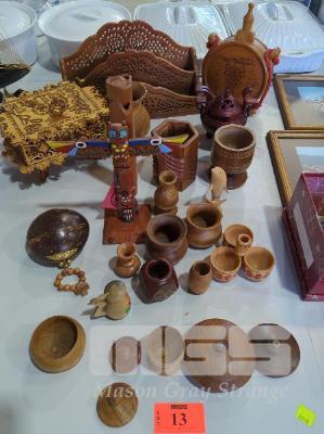 CARVED AND TURNED WOODEN TRAVEL SOUVENIRS (PART TABLE).