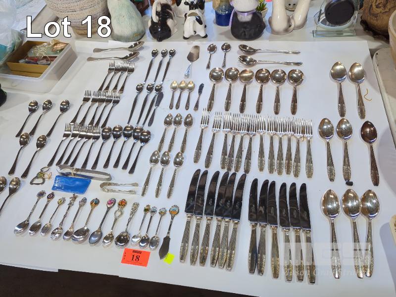FLATWARE, KNIVES AND COLLECTIBLE TEASPOONS.