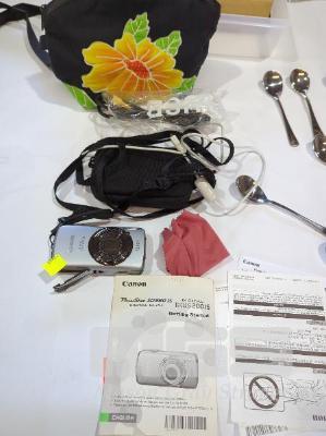CANON IXUS 200 IS DIGITAL CAMERA WITH MANUAL, CABLES, CARRY POUCH AND BAG.