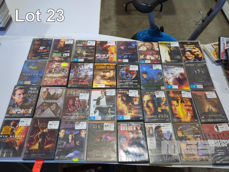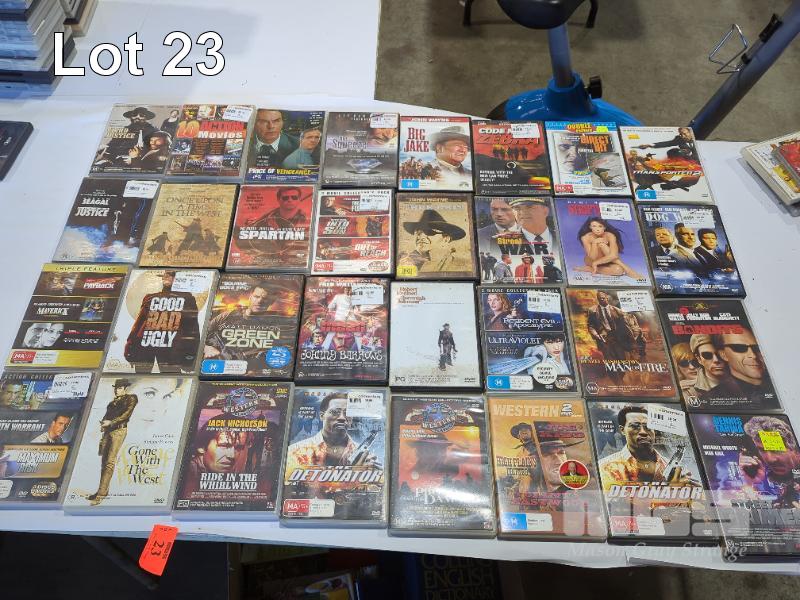 ASSORTED MOVIE DVDS. SCIENCE FICTION, ACTION & ADVENTURE AND WESTERNS (PART TABLE, 100 X ITEMS APPROXIMATELY).