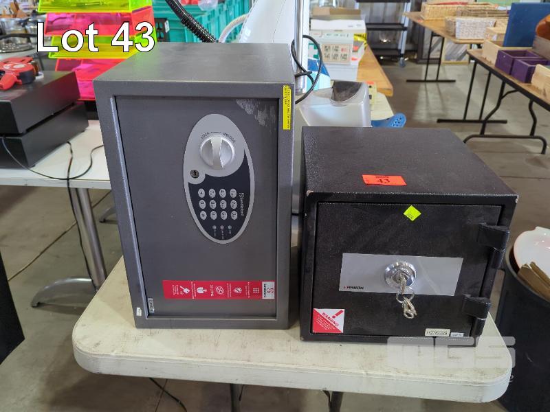 FLOOR SAFES. 1 X KARBON (MODEL AK2016002068) WITH KEYS. 1 X SANDLEFORD (MODEL EZ2018021761) ** NO KEY **