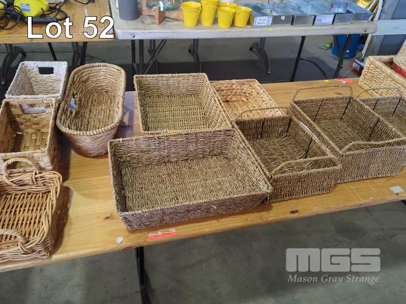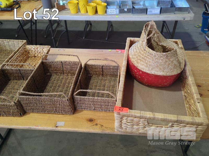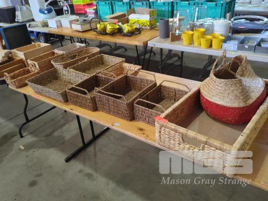 COLLECTION OF RATTAN AND OTHER WOVEN BASKETS (1 X TABLE)