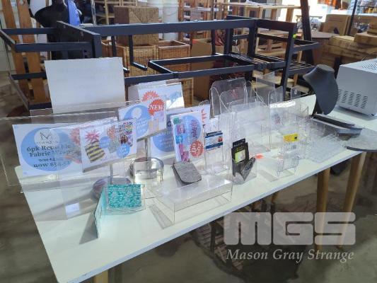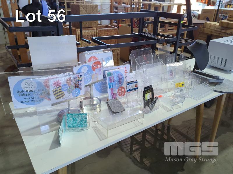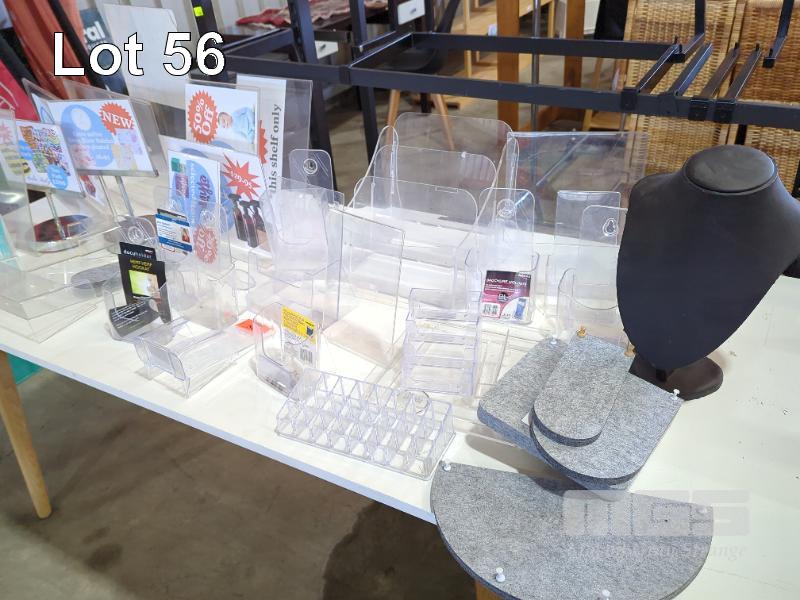 COLLECTION OF PERSPEX COUNTER TOP DISPLAYS, BROCHURE STANDS AND JEWELLERY STANDS/ MOUNTING BOARDS (2 X TABLE)