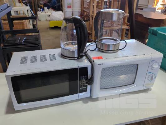 2 X MICROWAVE OVENS AND 2 X KETTLES.