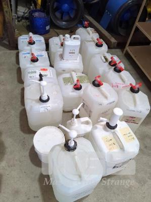 18 X PART BULK CONTAINERS OF ASSORTED CLEANING PRODUCTS AND BODY WASH/CONDITIONER/HAND WASH ETC