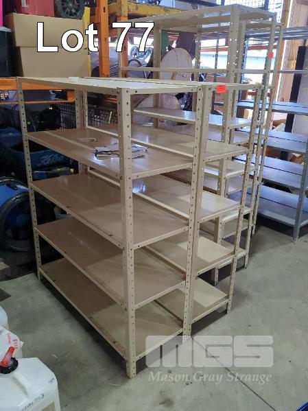 2 X 5-TIER STEEL SHELF UNITS. 1120 X 400 X 1400 MM (W D H). OPEN ANGLE TYPE. POWDER COATED.