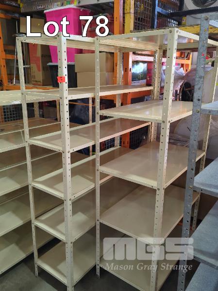 2 X 6-TIER STEEL SHELF UNITS. OPEN ANGLE TYPE. POWDER COATED.