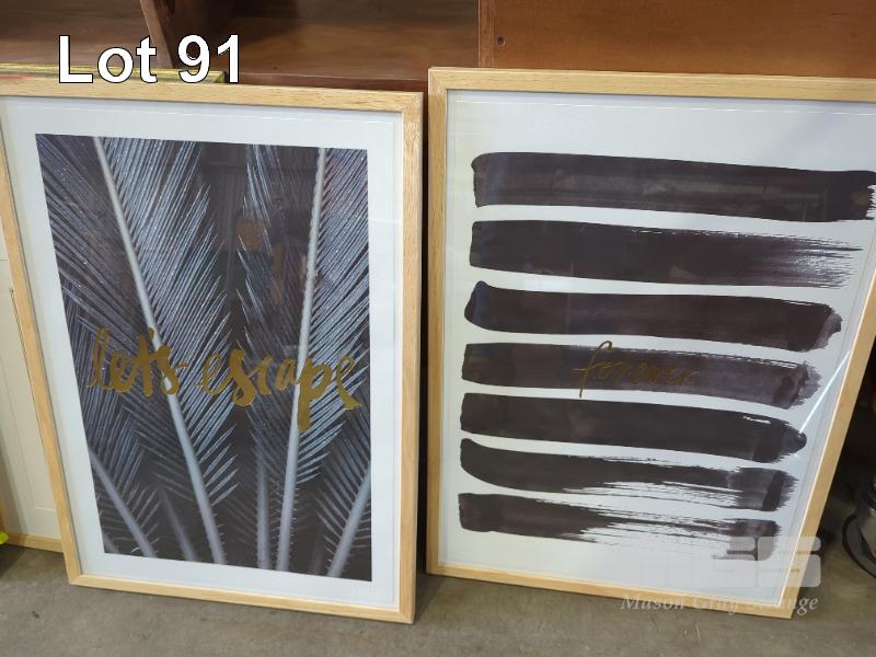 2 X PIECES OF WALL ART. OAK FRAME. GLAZED.