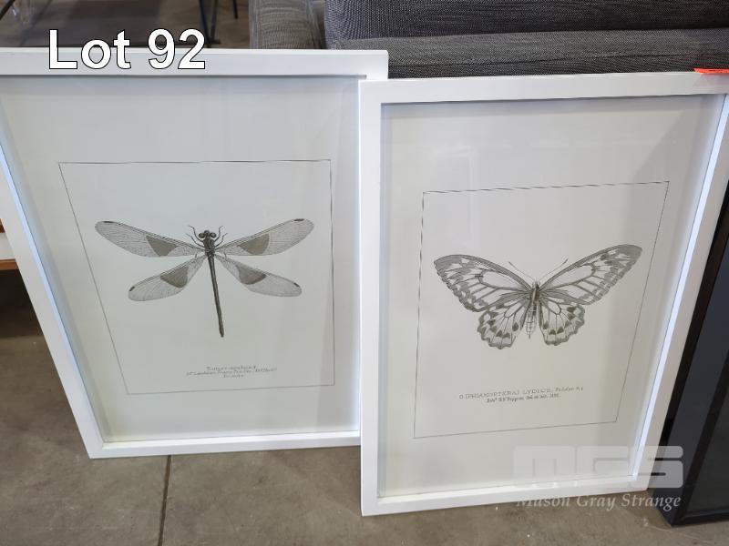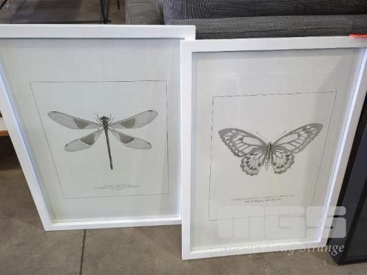 2 X PIECES OF WALL ART. WHITE FRAME. GLAZED.