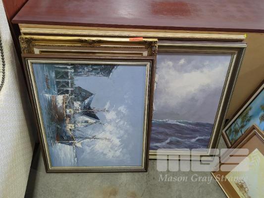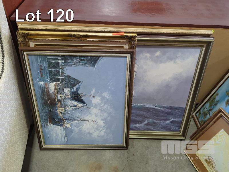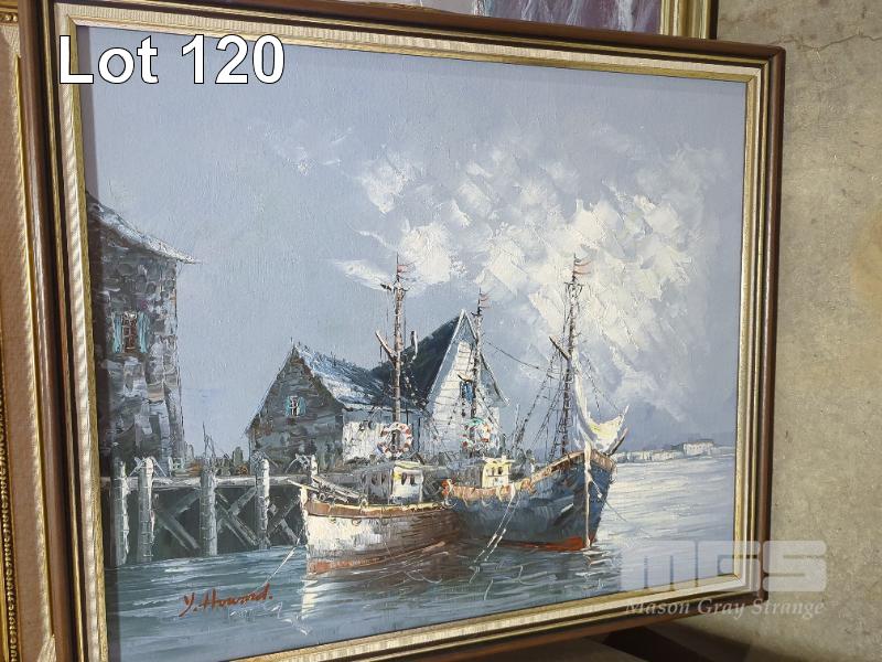 4 X ORIGINAL ARTWORKS. OIL ON CANVAS. SHIPS BOATS AND COASTLINES.